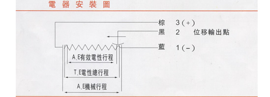 6、 輸出類型:0-100%給定輸入工作電壓(隨位移變化而變化) 注:如需輸入電壓DC12-24V 輸出 4-20mA 0-5V 0-10V 可選擇外置式變送模塊(需在定貨時說明)